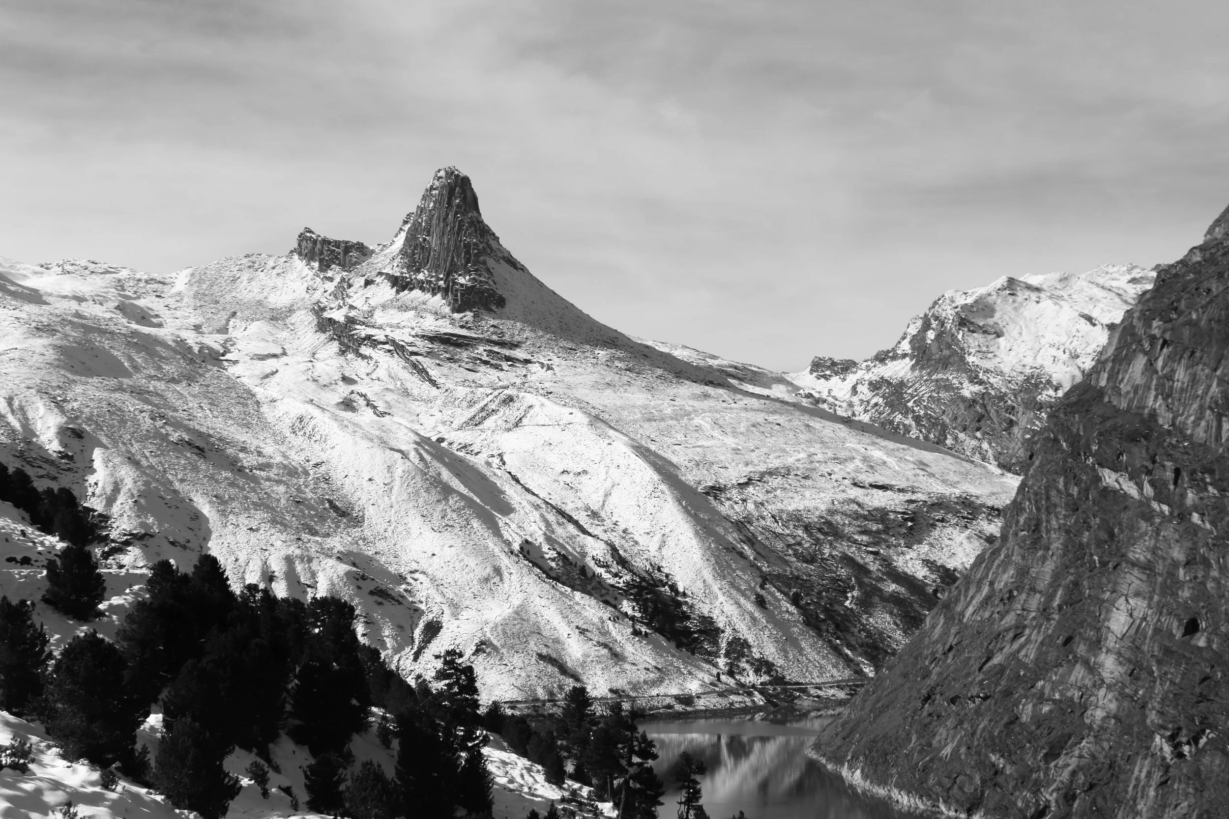 The glittering stone of Vals, raw. The hieratic Zervreilasee and Zervreilahorn.